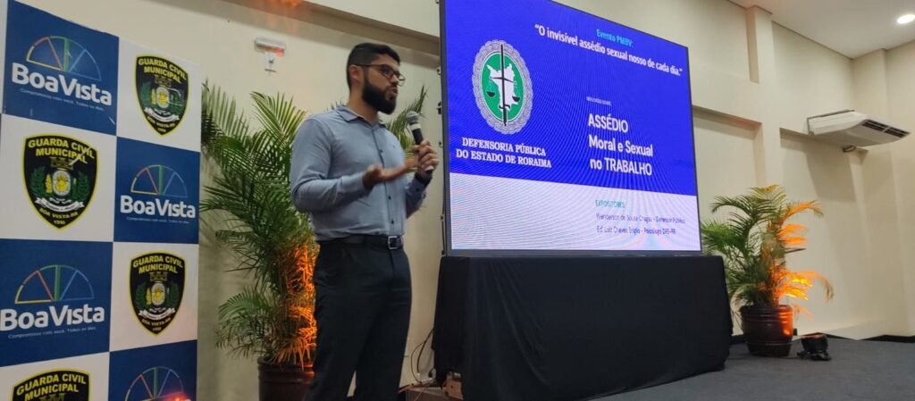 A Defensoria Pública do Estado de Roraima (DPE-RR), representada pelo defensor público Wenderson de Sousa Chagas e pelo psicólogo Ed Luiz Chaves, foi convidada pela Prefeitura Municipal de Boa Vista (PMBV), pelo segundo ano consecutivo, para ministrar a palestra “O invisível assédio nosso de cada dia”, que aborda reflexões sobre assédio moral e sexual no ambiente de trabalho. O público-alvo foi composto por servidores do sexo masculino de diversas secretarias municipais.