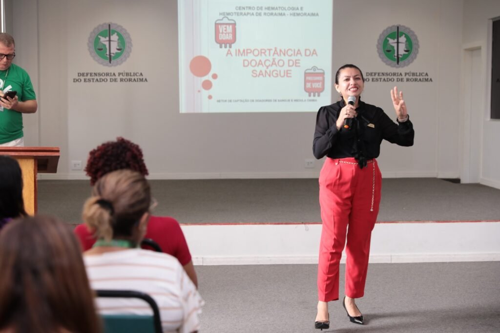 “Sangue é essencial e insubstituível”, destacou Hellen Bessa, assistente social do Hemoraima e palestrante – FOTO: ASCOM/DPE-RR
