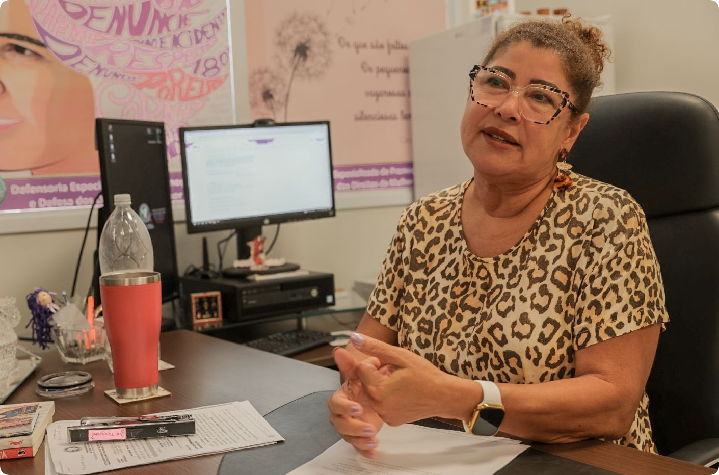 “Nos temos consciência que é um trabalho muito desgastante na medida em que a gente se depara diariamente com os demais diversos tipos de mulheres agredidas. A violência doméstica ocorre só na periferia? Não. Violência doméstica ocorre em todos os lares e atinge mulheres e meninas de todas as idades,” enfatizou a defensora.